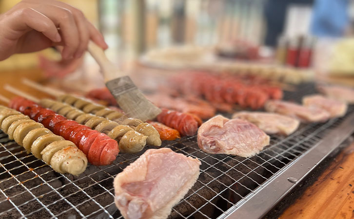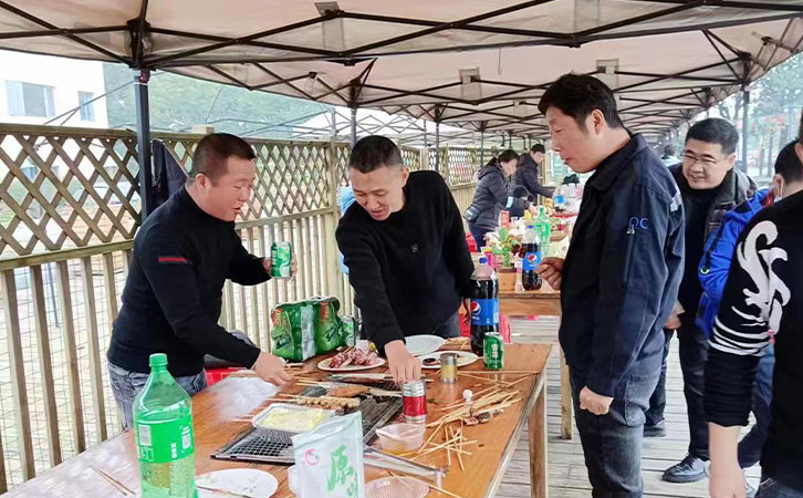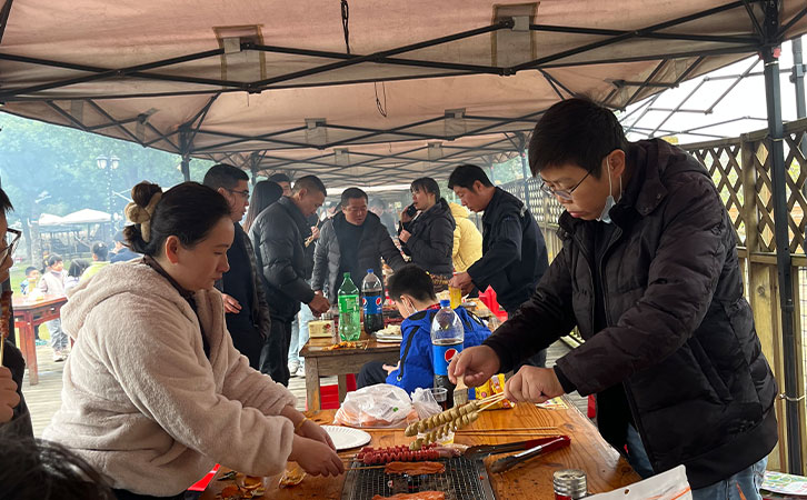 游玩過后,饑腸轆轆的人們開始燒烤,各組人員分工明確、團(tuán)結(jié)協(xié)作,你生火我備料,圍坐在一起共同分享自己制作的美食,觥籌交錯間,匯聚著朝夕相處的同事們濃濃的友情和幸福。