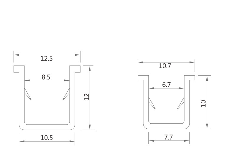 U型槽條放入型材槽坑后,可將有機玻璃等板材插入,起到緩沖,保護和密封等作用。