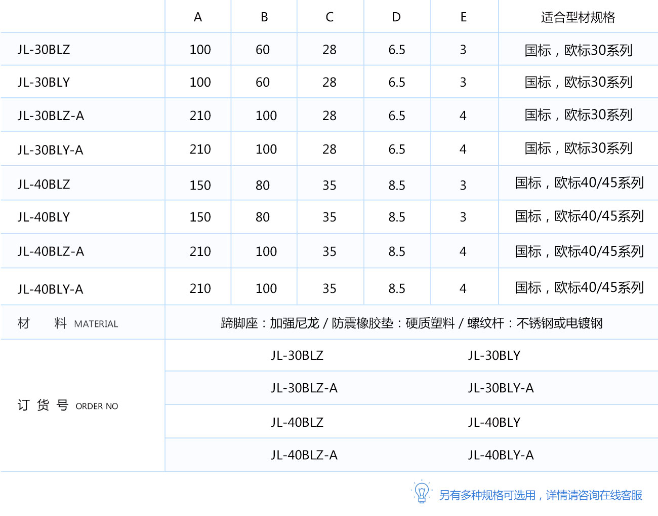 適用規(guī)格:30和40系列型材