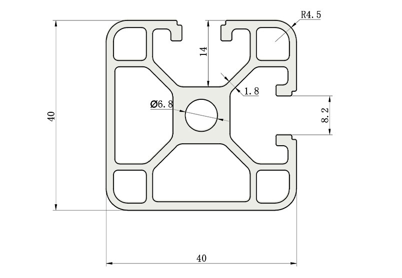 適用于應(yīng)力及強(qiáng)度較大的框架組合結(jié)構(gòu),它的外型采用圓角過渡,表面經(jīng)過陽極氧化處理,高雅美觀并抗腐蝕,它通常采用M8X20高強(qiáng)度專用螺栓加彈性扣件的內(nèi)部連接方式,堅固而又可靠,是工業(yè)框架應(yīng)用較為廣泛的型材之一。