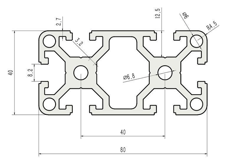 適用于應力及強度較大的框架組合結(jié)構(gòu),它的外型采用圓角過渡,表面經(jīng)過陽極氧化處理,高雅美觀并抗腐蝕,它通常采用M8X20高強度專用螺栓加彈性扣件的內(nèi)部連接方式,堅固而又可靠,是工業(yè)框架應用較為廣泛的型材之一。